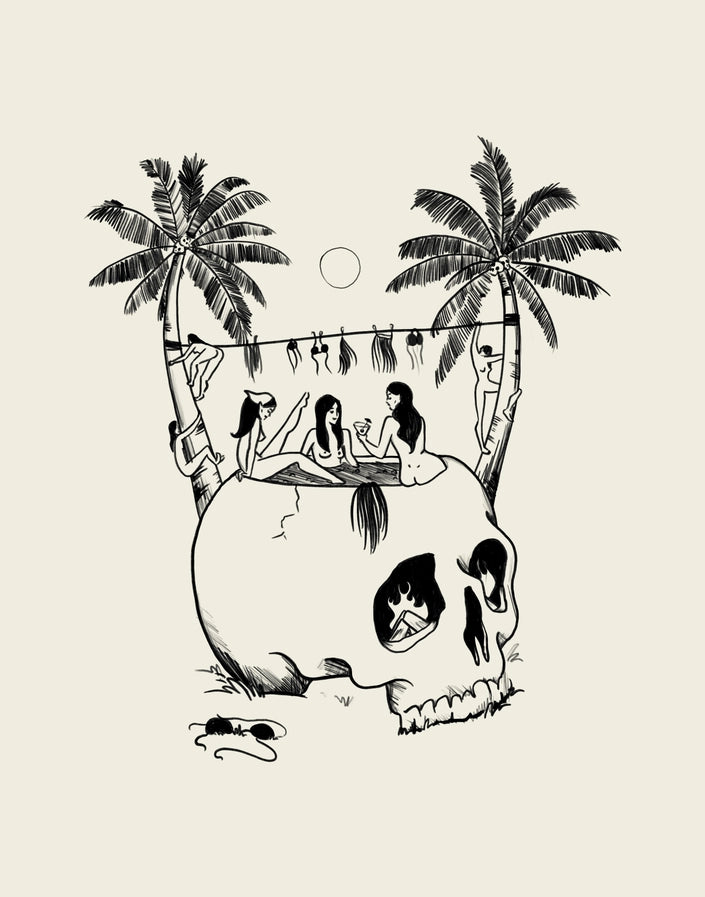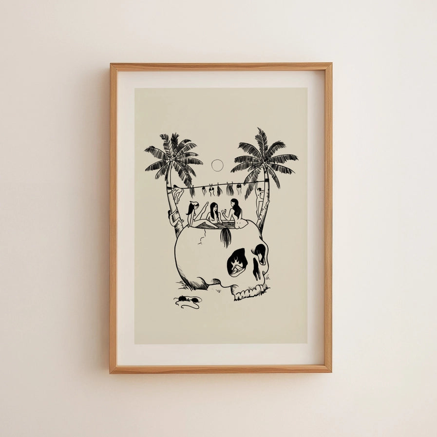 Add some cool, retro flair to your wall art collection! This vintage retro-inspired print captures a unique scene of hula girls relaxing, with a fun and unexpected twist. The minimal style and hand-drawn artwork make it an ideal fit for those who appreciate charming tiki and beach home decor with a little edge.